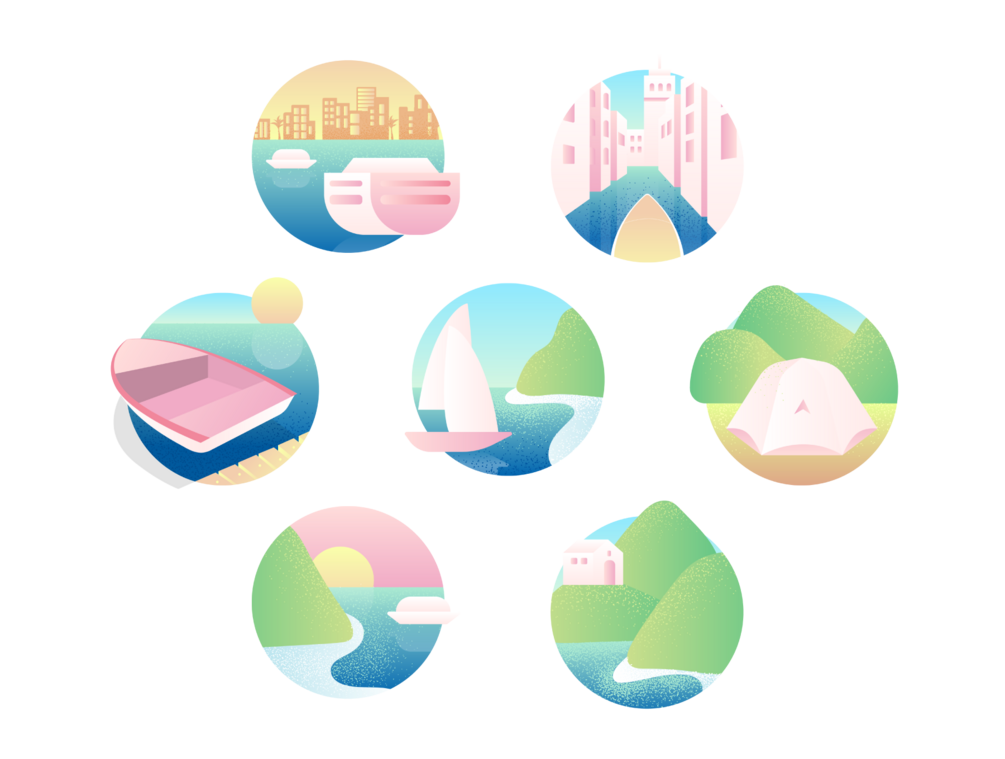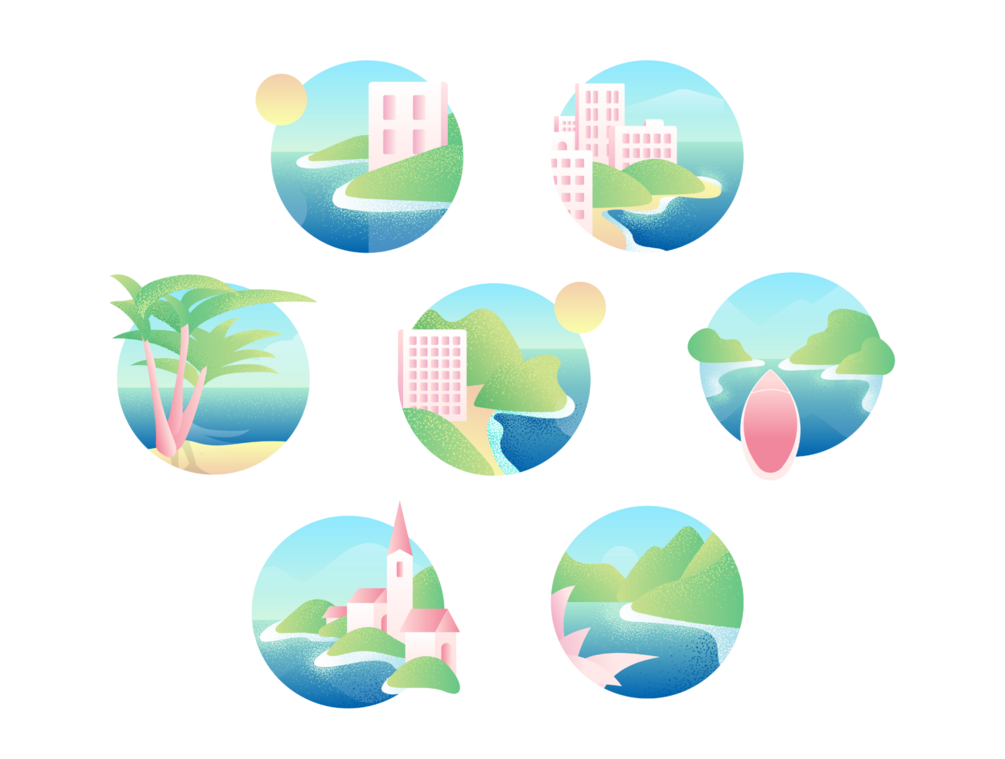 Travel Scenes Illustrations for your website, social media, blog, email newsletters, and more! All with transparent background.